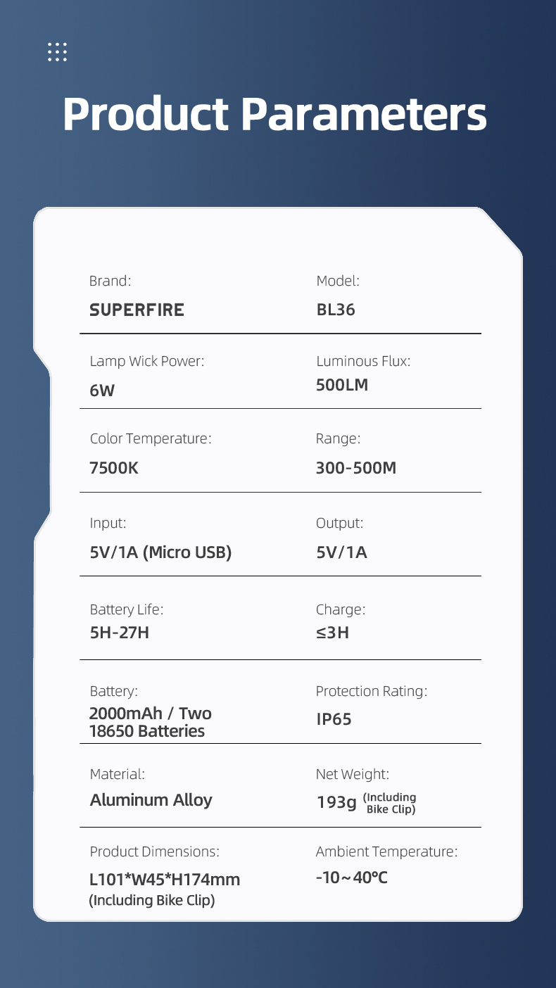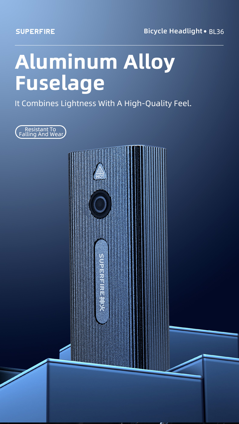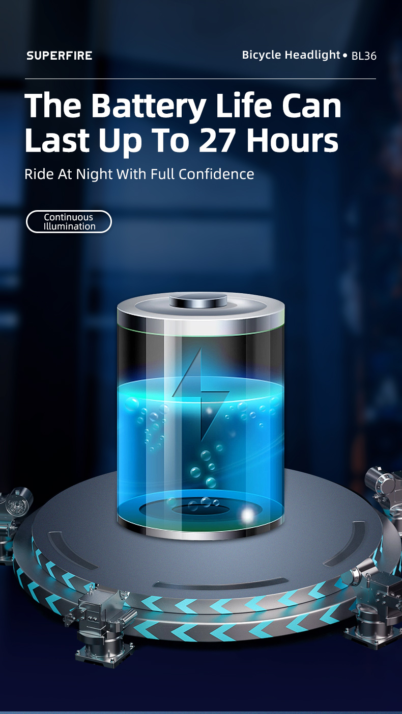 BL36は500ルーメンの高輝度自転車フロントライトです。 4000 mAhのリチウム電池が内蔵されており、最高の明るさの状態で5時間の電池寿命を提供できます。 その最大範囲は最大500メートルに達することができます。 IP65保護定格により、さまざまな過酷な環境を簡単に処理できます。 したがって、これは長距離サイクリングに適した製品です。